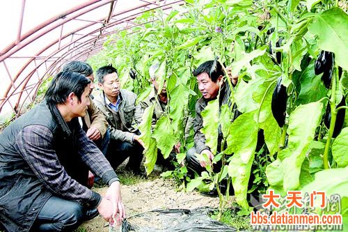湖北日报讯 昨日,天门市科技局“三万”活动工作组带着驻点村15名村干部,专程来到该市蔬菜大棚创新基地双剅口村和农业科技示范基地黄金村,现场观摩学习先进蔬菜种植模式,引导他们积极探索高效种植方法,发展高效农业。图为在双剅口村阳光蔬菜大棚,科技种植能手讲解种植技术。 (记者方军 通讯员邓慧遐 刘银斌 摄)