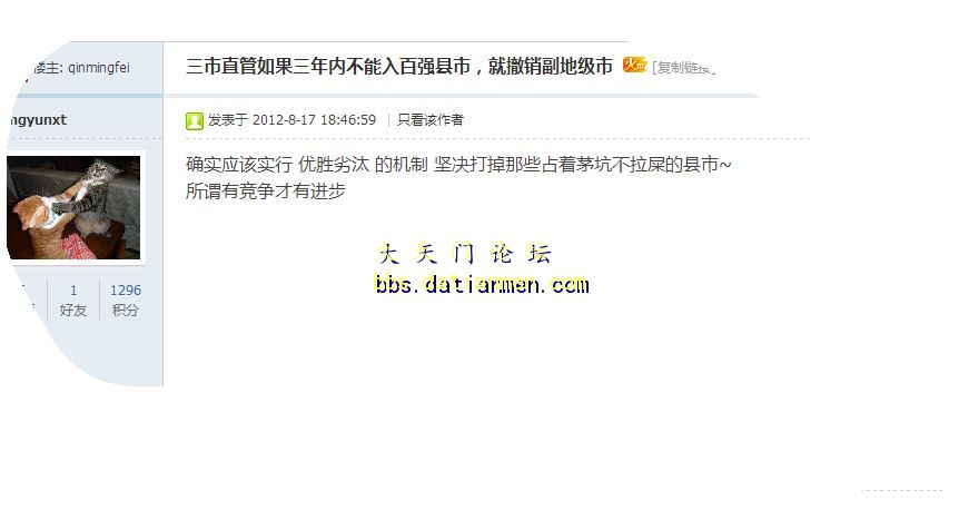 东湖论坛有人建议:三市直管如果三年内不能入百强县市,就撤销副地级市