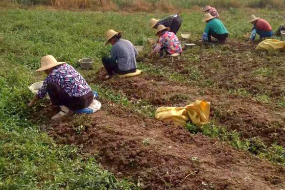 扩大种植带领富,我们发挥合作社的引领示范作用,带动老百姓富起来,首先发动老百姓自己发展种植面积,然后通过土地流转,把剩余土地流转到合作社,让有劳动能力的农户在合作社务工,一般一个农户年务工收入在7000元以上,在用工的同时,我们注重吸纳贫困户,全村有19户贫困户在合作社务工,年收入都在万元以上。