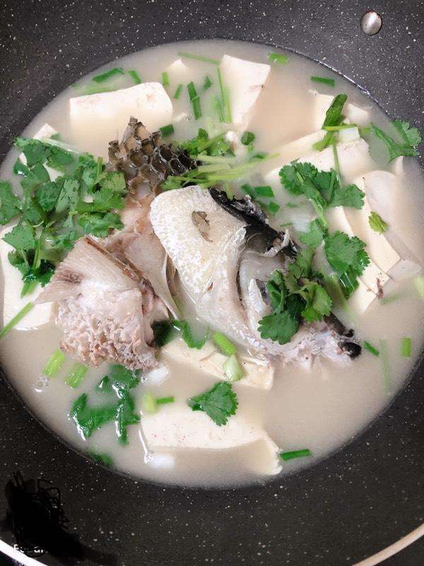 最后要说火候了,干脆我说个全程做法。将鱼头切成两半,放少许油盐煎香。放六小饭碗水,大火烧开。改小火焖煮15分钟。放入切好的半嫩豆腐,再煮5分钟,然后放入大葱末,再煮3分钟,盐和鸡精调味,出锅,撒香菜或者香葱,齐活。又香又鲜,吃吧。记得乘热吃,凉了不好吃。