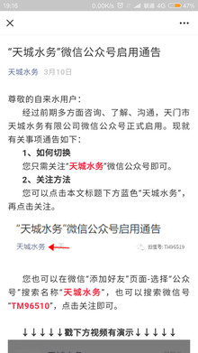 隔壁潜江仙桃都有自来水公司微信公众号,天门是不是也该搞一个,方便市民交费,报个停水通知啥的。