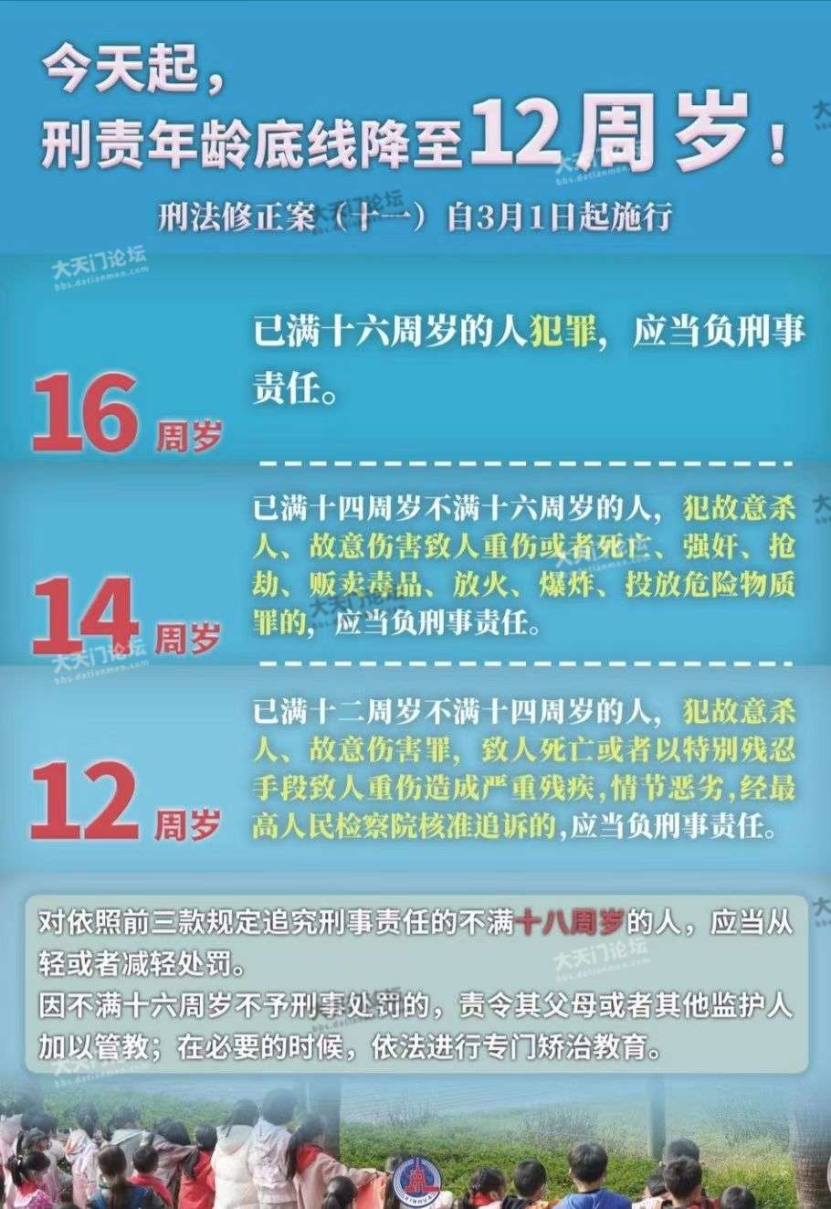 3月1日起,刑事责任年龄底线降至12周岁!