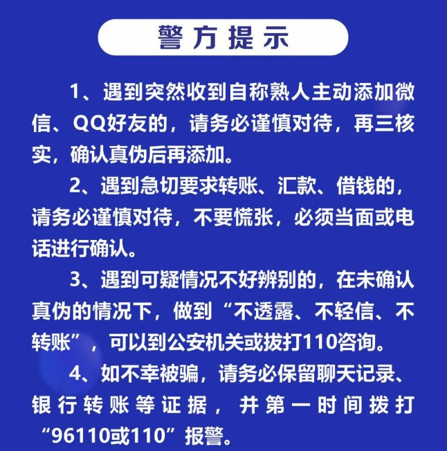 7月7日,皂市镇居民何某在家休息时,收到陌生人添加QQ好友,对方自称是何某女儿,需要交学费9800元,何某信以为真,便向对方提供的银行 账户内转账9800元,转账后何某意识到对方账户名称不是女儿的名字,觉得事有蹊跷,便给女儿打电话,才发现自己被骗。