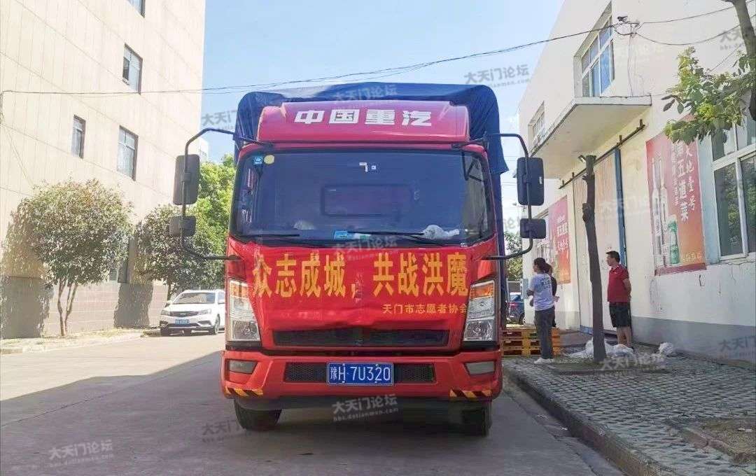 一辆满载物资的货车从天门出发