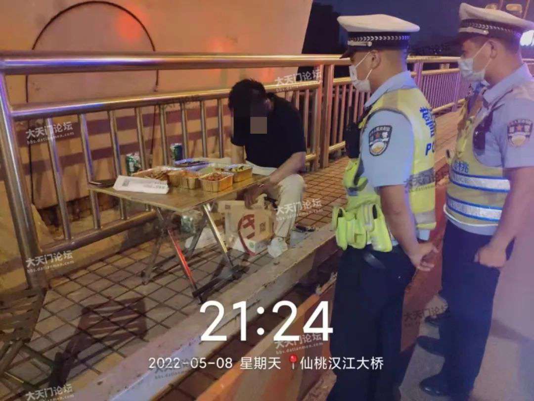 5月8日晚,仙桃交警二大队民警巡逻至汉江大桥路段时,发现人行过道上,居然立了一个小桌子,上面还放着酒水之类,一对小情侣在对饮。民警当即上前劝导,要求二人尽快离开。