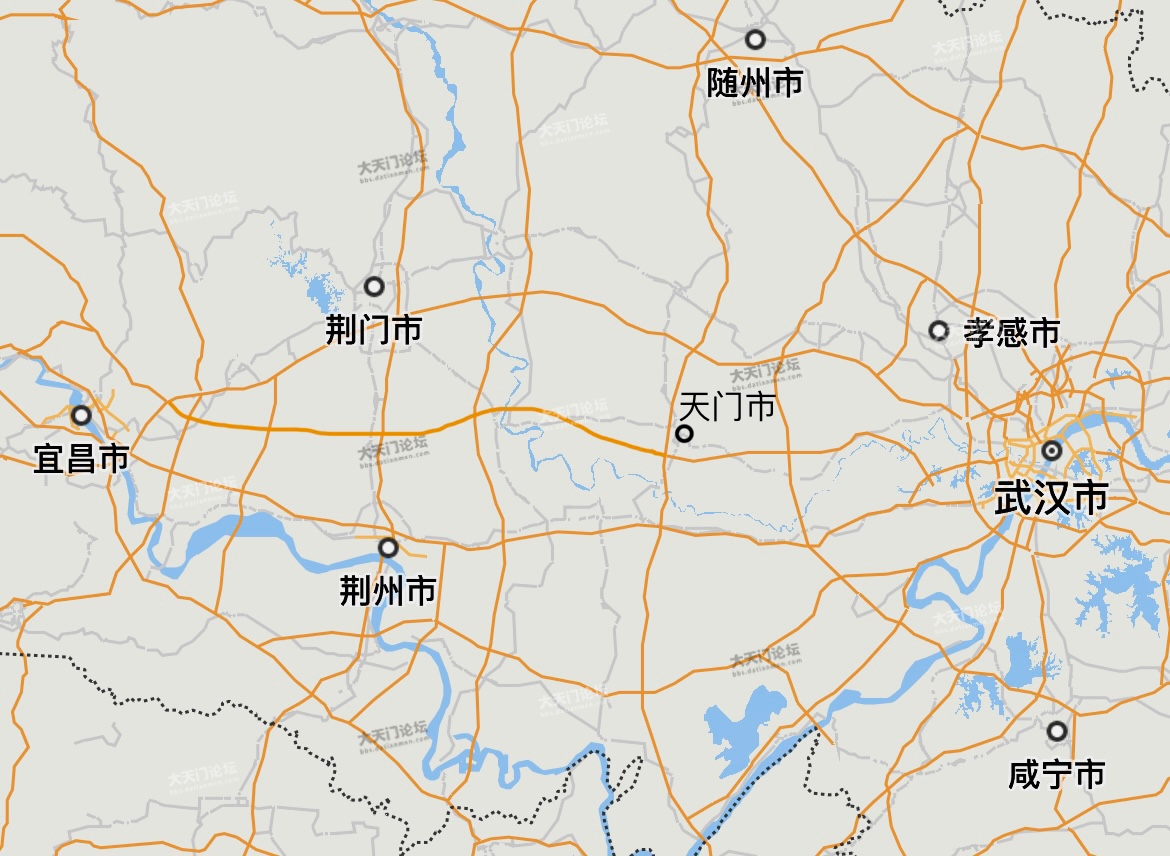 :好早之前就有了,不是现在才有的,以前只是有天门段的走向,后面汉川段的走向也是虚线全显示出来了,你地图上放大一点看,干一,马湾,小板三个出入口收费站都标好了