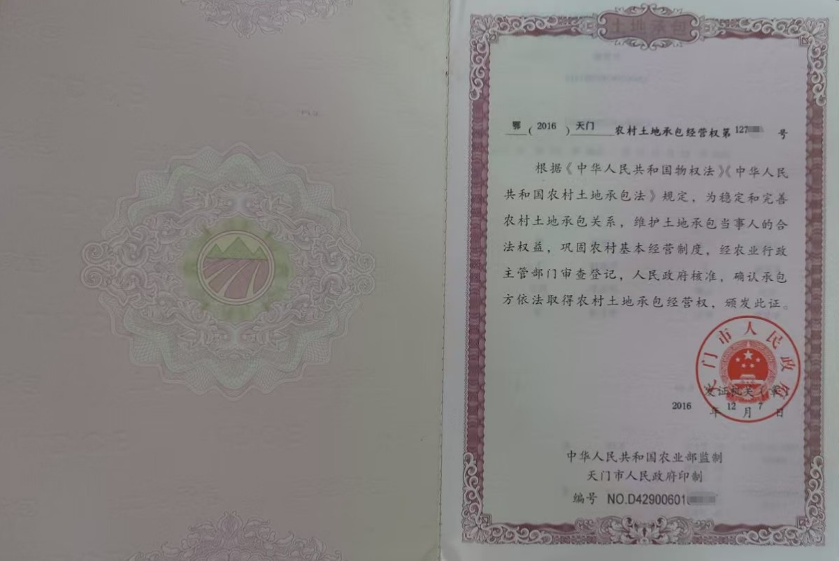 2015年,我方积极响应国家号召,配合政府部门完成土地确权工作,并于次年依法取得《农村土地承包经营权证》证号:鄂(2016)天门市农村土地承包经营权第127200号,编号:NO.D4290060166537。该证载明承包总面积8.69亩,共计4个地块。其中地块代码4290061062230404066,登记面积为3.23亩,该地块与同村村民罗某强(祥)的承包地块相邻。