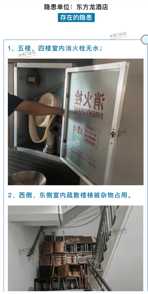 湖北省消防救援总队汉江支队积极开展消防安全隐患排查和曝光工作现对以下存在隐患问题的场所予以曝光各单位需引以为戒立即自查自改