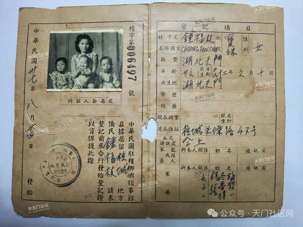 如今,他们的后代张先生手持珍贵的家族资料——中华民国时期的登记证件,希望通过热心人士的帮助,找寻祖籍湖北天门的根脉与亲人。