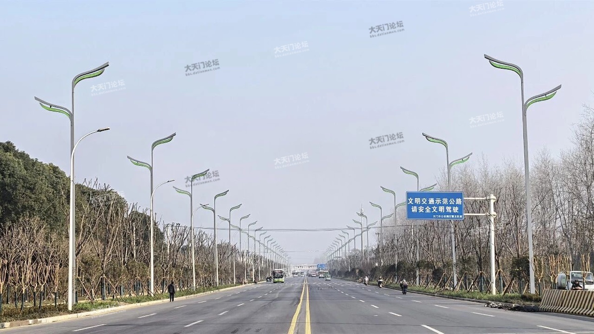 值得注意的是,“迎宾大道”新装的路灯其主体采用茶叶卷曲的造型设计,既契合了天门“茶圣故里”的文化定位,又让城市风貌更具辨识度。