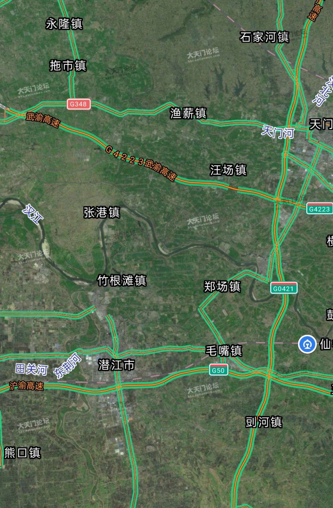 高德地图已显示天门西段,石家河互通。