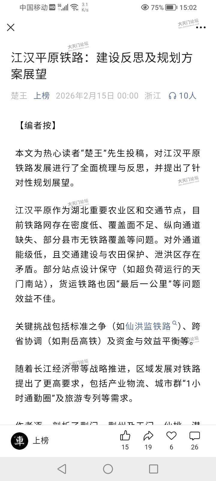 长荆铁路、宁蓉铁路、沪渝蓉铁路、江汉货运,北中南布局完善,兼顾客货,普铁与高铁都有。天门三十年步步为营,务实筹划,紧盯目标,有很多铁路争取的经验,值得天门内部好好总结。