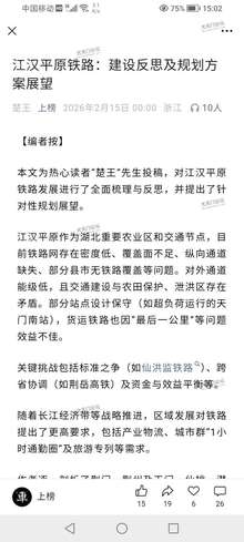 沿江高铁、纵向通道、货运体系、枢纽能级等项目的谋划与实施,将为江汉平原融入全国铁路骨干网、打造综合交通枢纽提供坚实支撑。