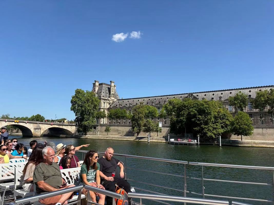 我们登上了塞纳河的游船,随着船身缓缓开动,巴黎的精华画卷在眼前徐徐展开。船头破开河水,浪花一路相伴,两岸的古老建筑依次映入眼帘:庄严巍峨的巴黎圣母院,在阳光下散发着厚重的历史气息;精致典雅的卢浮宫,藏着数不尽的艺术瑰宝;高耸的埃菲尔铁塔遥遥相望,钢铁的浪漫在河畔静静矗立;还有一座座风格各异的古桥,石拱横跨河面,桥上的雕刻精致细腻,仿佛在诉说着百年的故事。