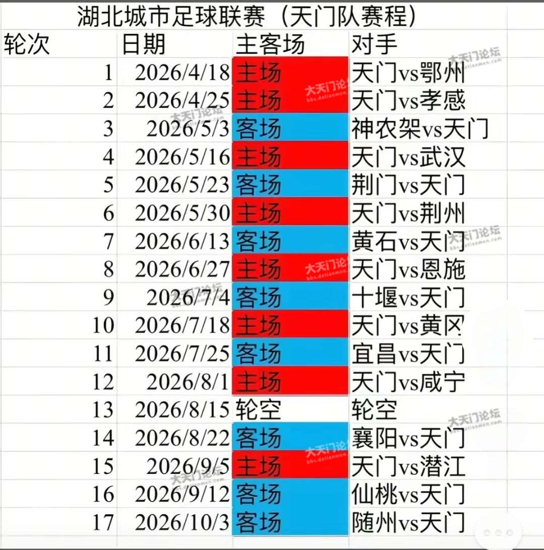 楚超即将开赛,天门队全赛程公布