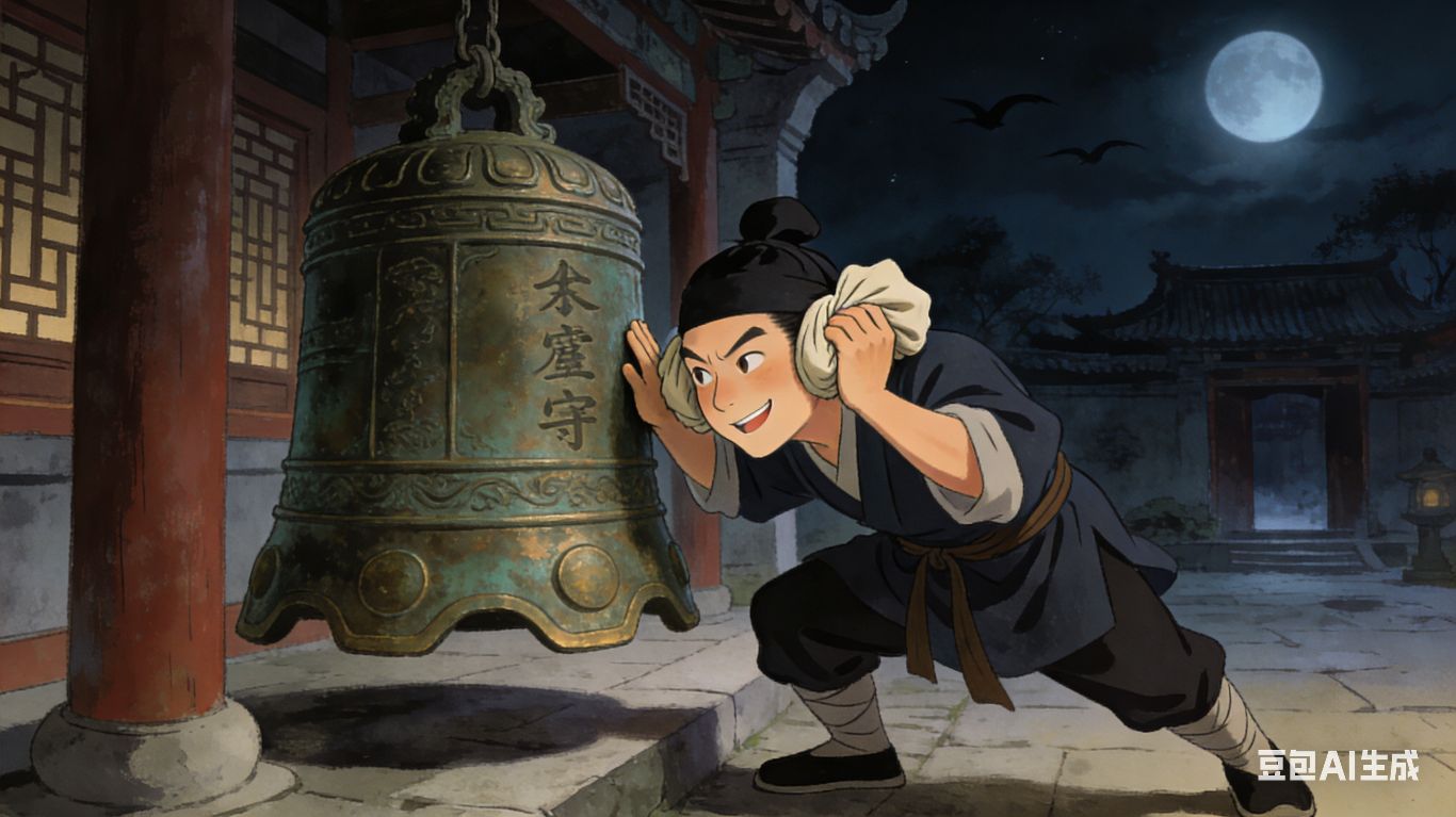 方其掩耳以行,缩颈而前。心似鹿撞,魂若丝悬。冀幸钟响之未觉,奈防路人之早传。俄而钟声震野,清响激越。初则远听隐约,继则近逼喧阗。盗者闻之,若惊弓之鸟;众者闻之,如聚蚁之垣。奔逃无措,狼狈颠连。