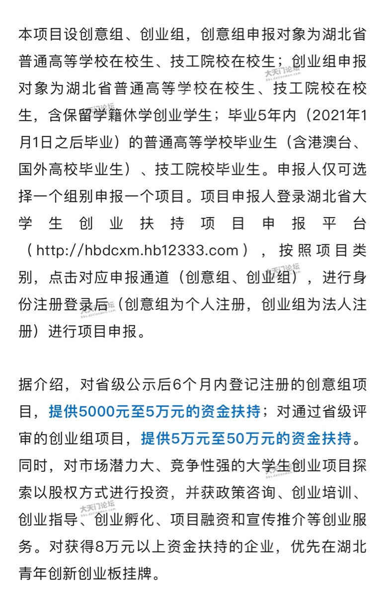 3月31日,记者从天门市人社局获悉,为鼓励和引导更多大学生在鄂创新创业,助力我省加快建成中部地区崛起的重要战略支点,省人社厅联合省教育厅、省财政厅、团省委共同实施2026年度湖北省大学生创业扶持项目。天门符合条件的大学生均可申报,申报时间为4月1日至5月15日。