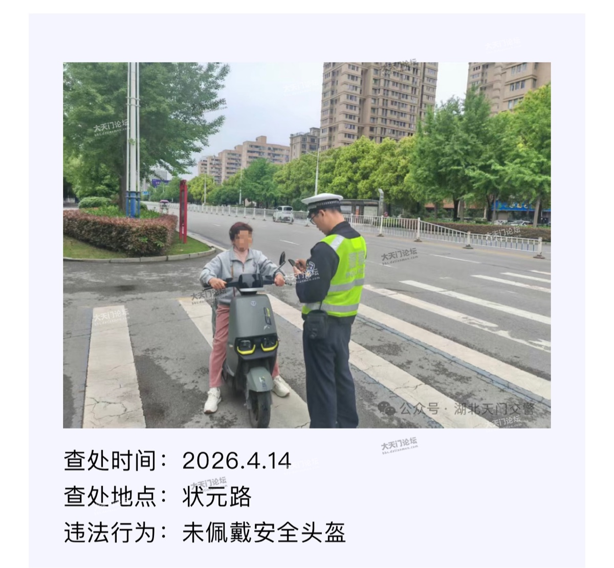 天门街头开始严查不戴头盔现象